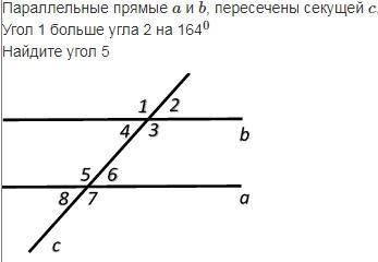 Пусть x - ∠2, тогда x + 164 - ∠1. Так как ∠1 и ∠2 - смежные, то их сумма равна 180°. Составим и решим уравнение: