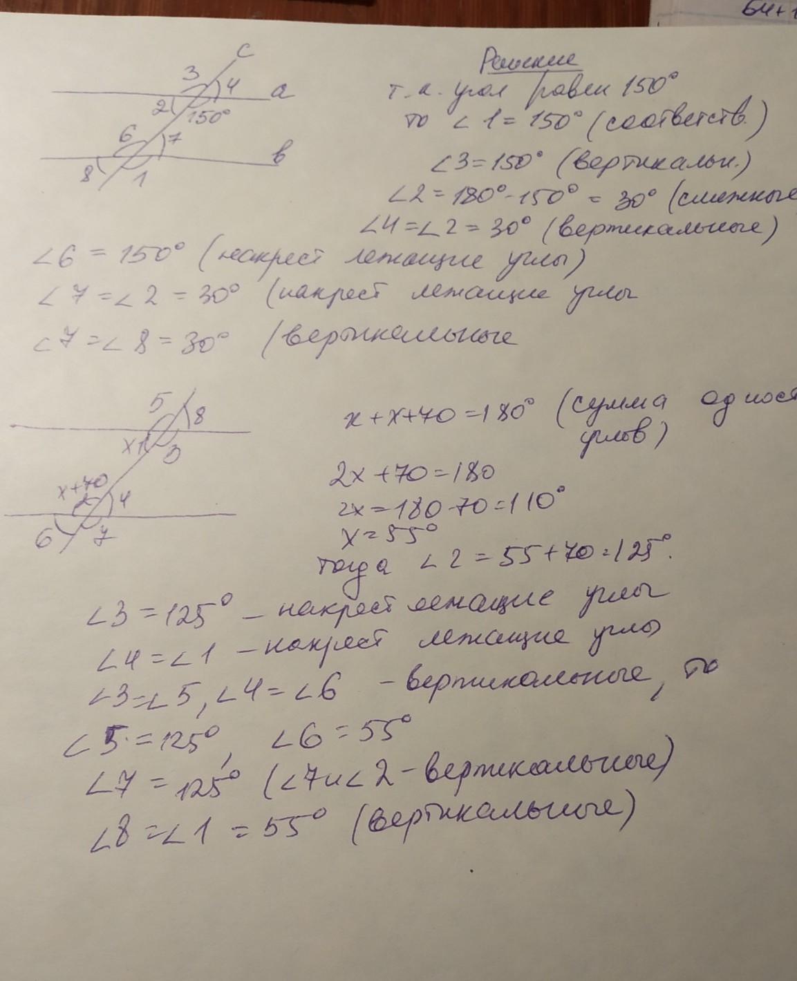 - лельных прямых секущей, если: а) один из углов равен 150°;