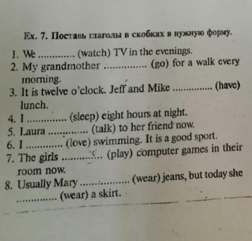 8. Usually, Mary wears jeans, but today she is wearing a skirt.