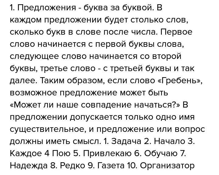 Each sentence will have as many words as there are letters in the word after the number. The first word starts with the word’s first letter; the next word begins with the second letter, the third word with the third letter, and so on. Thus, if the word is Comb, a possible sentence could be Can our match begin? Only one proper noun is allowed per sentence, and the sentence or question should make sense.