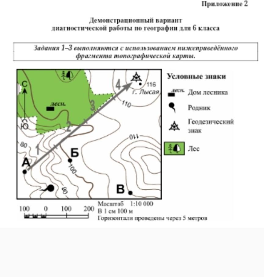 Расположите точки А,Б,В в порядке понижения абсолютных высот