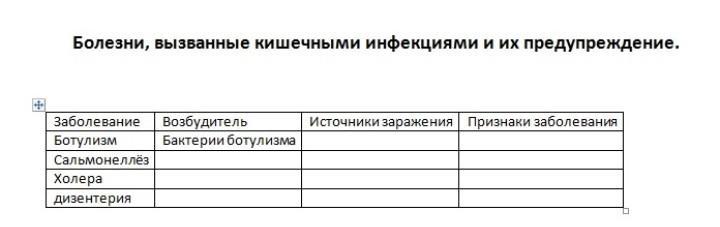 Ботулизм: возбудитель- Бактерия ботулизма( клостридия). Источник заражения- животные, в кишечнике которых находятся клостридии и с испражнениями выделяются в окружающую среду. Признаки заболевания- тошнота, рвота, схваткообразная боль в животе, жидкий стул без примесей. Расстройство зрения- затруднение чтения, "сетка" перед глазами, двоение предметов.Жажда, сухость слизистых, головная боль головокружение, затруднение дыхания.