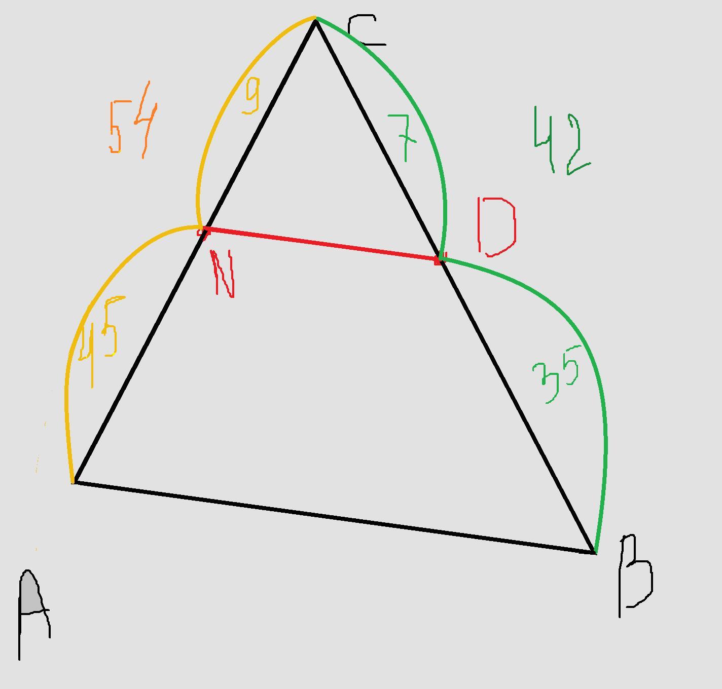в треугольнике abc ac=54 bc=42 на стороне bc отложили отрезок bd=35 см ,а на стороне ac отрезок cn=9см подобны ли треугольники abc и ndc