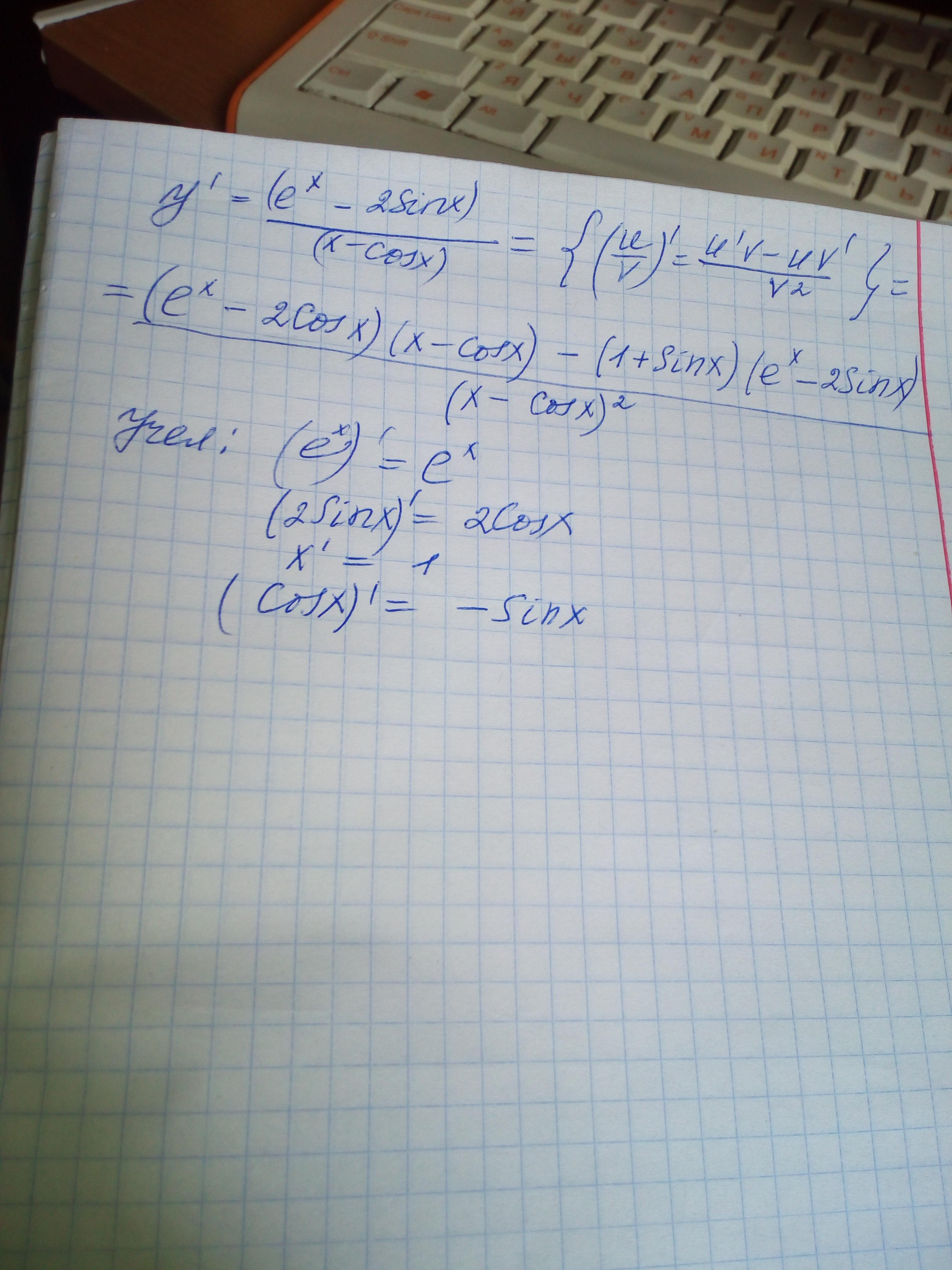 Найти производные от функций y=e^x-2sinx/x-cosx