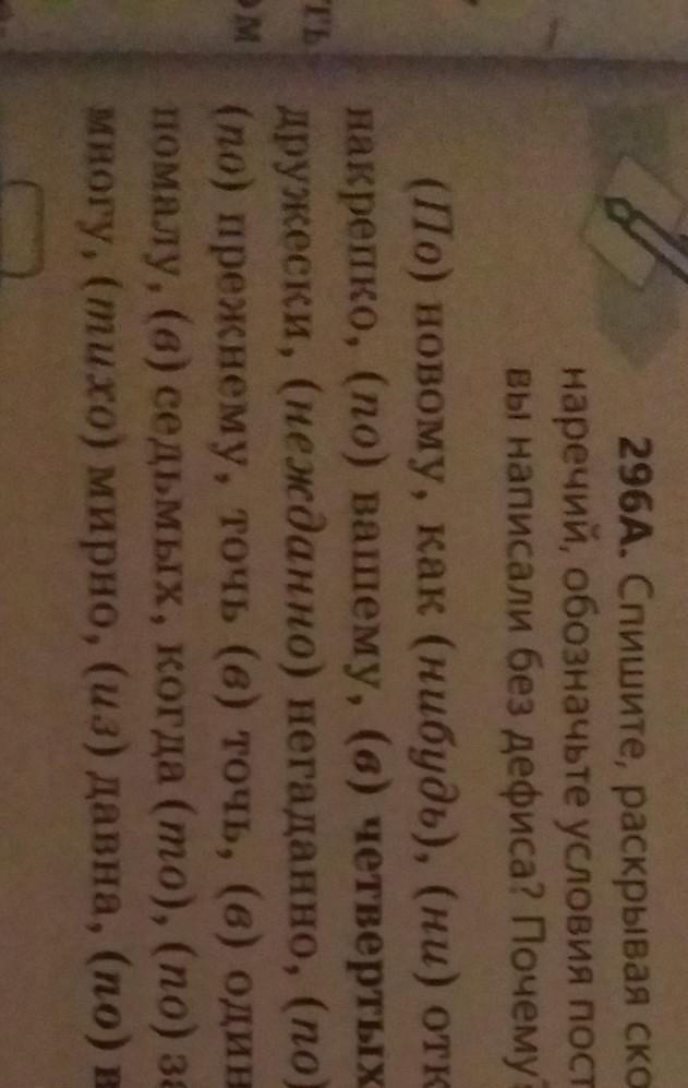 По-новому, крепко-накрепко,как-нибудь,по-вашему, в-четвёртых,нежданно-негаданно, по-дружески,по-прежнему,точь-в-точь,в-седьмых, когда-то, тихо-мирно, издавна.