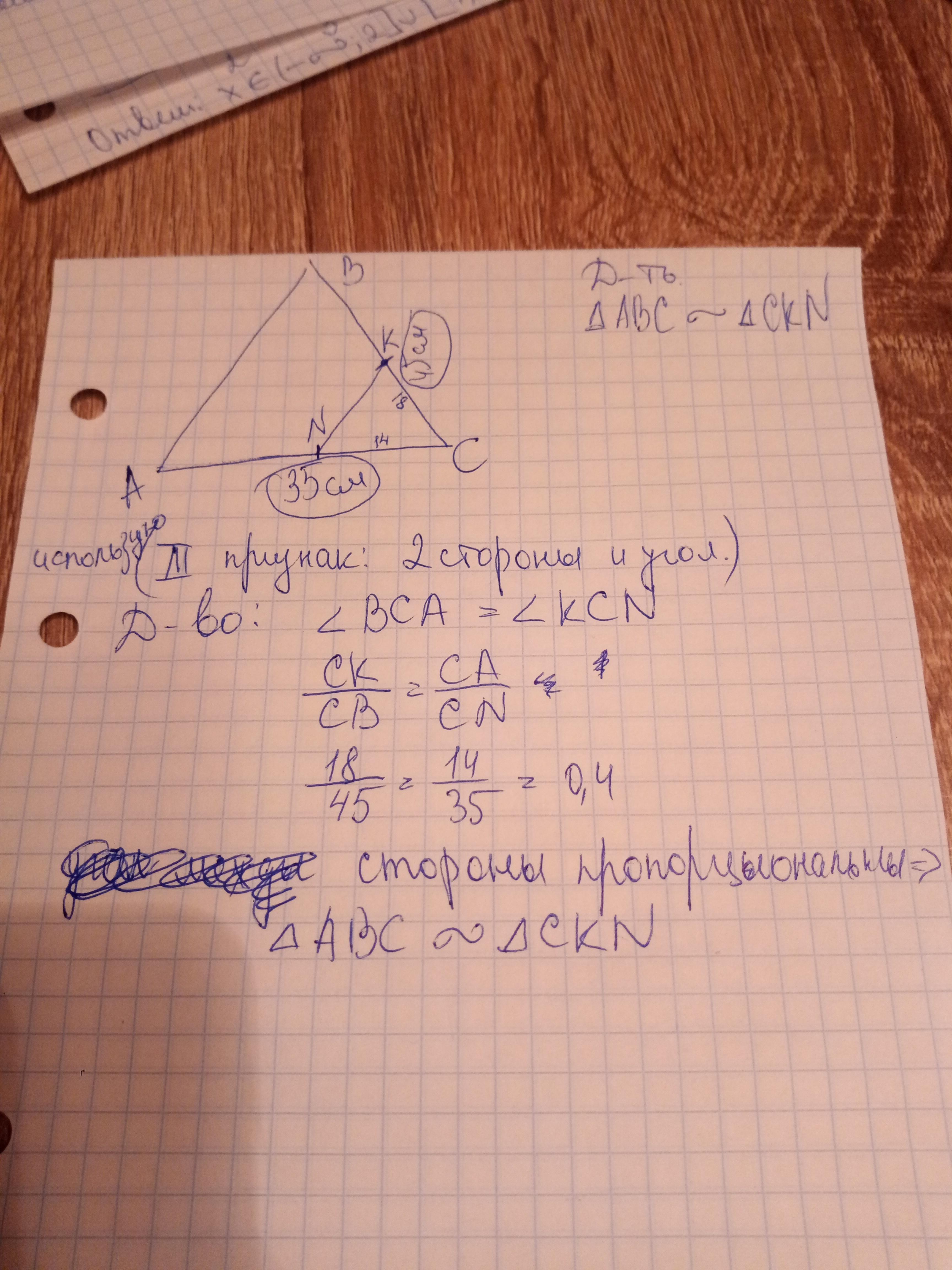 В треугольнике ABC AC=35см BC=45см,на стороне CB отложили отрезок CK=18см,а на AC отрезок CN=14 см. Подобны ли треугольники ABC и NKC?
