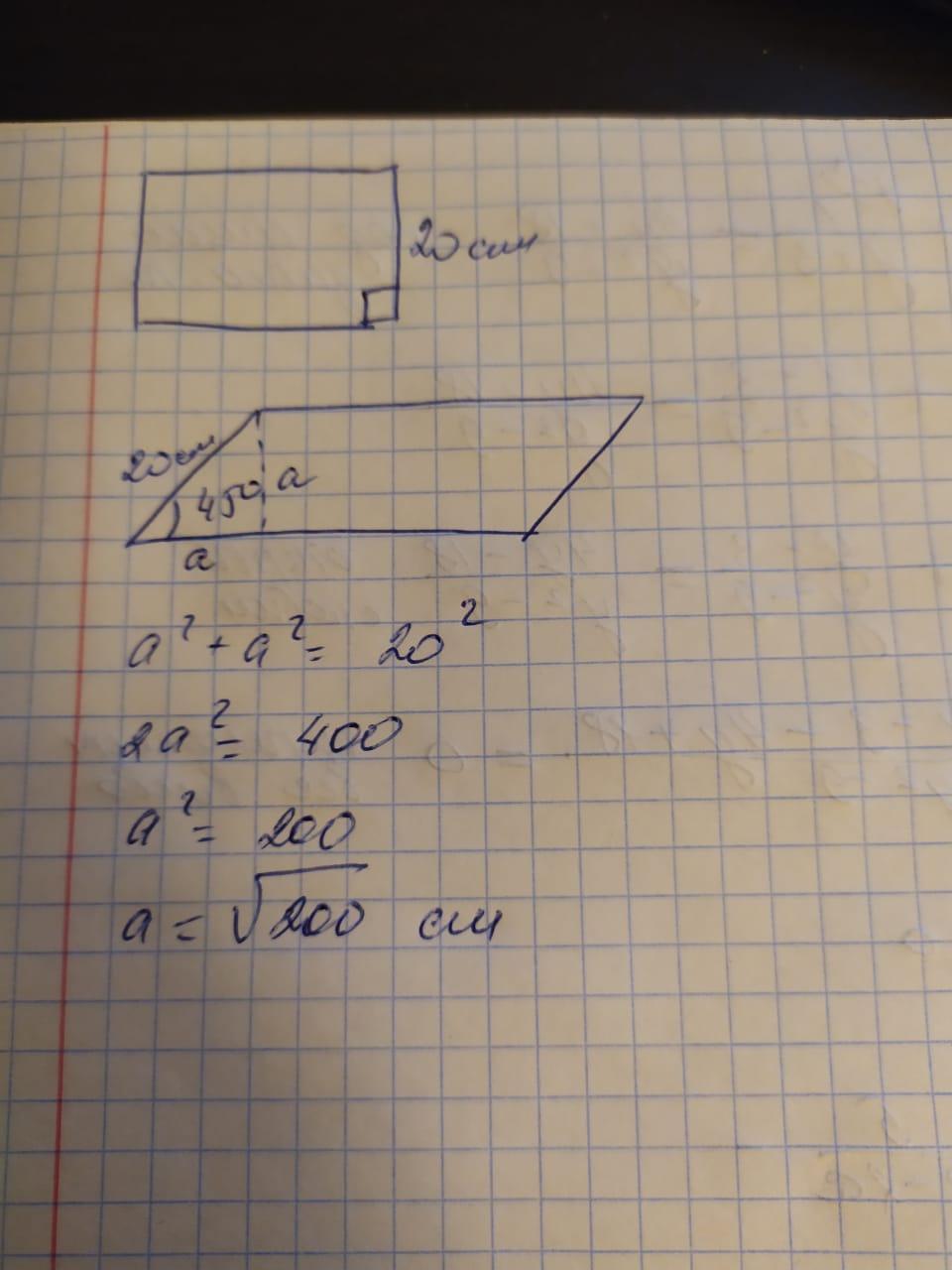 какое будет расстояние между верхними стенками, если боковые наклонены на 45°