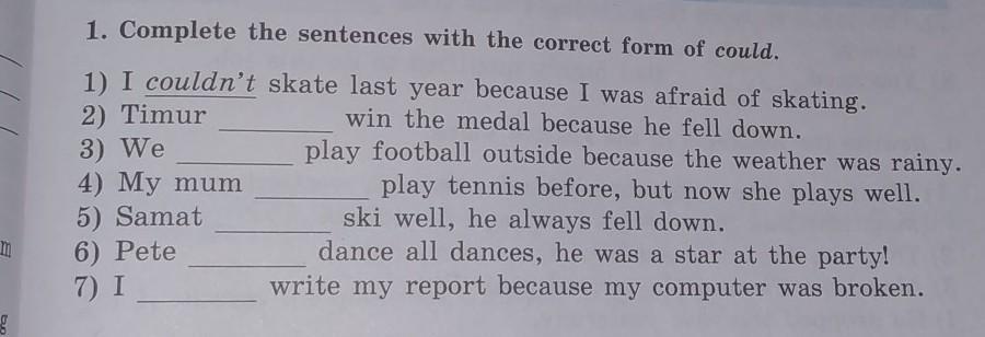4. My mum couldn't play tennis before, but now she plays well.