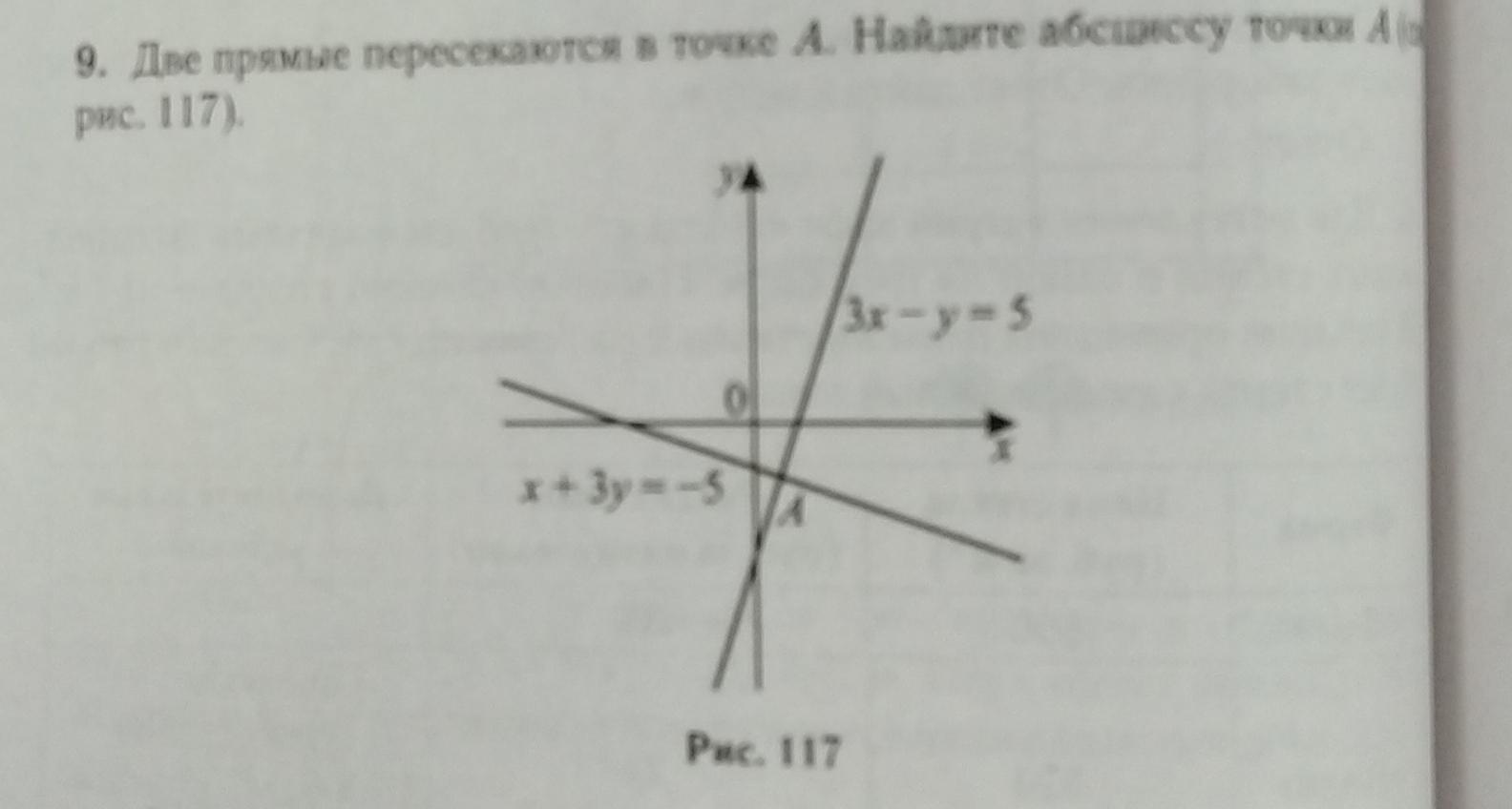Абсцисса -- координата точки по оси X. Общей точкой для двух прямых будет являться точка, принадлежащая обоим графикам. Точка принадлежит графику, если при подстановке координат в уравнение функции получается верное равенство. Тогда, чтобы найти точку, принадлежащую обеим прямым, необходимо решить систему уравнений: