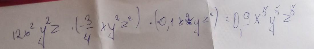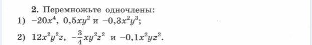 1) -20х^4 * 0.5ху^2 *(-0.3х^2у^3)= 10х^5у^2*....=3х^7у^5