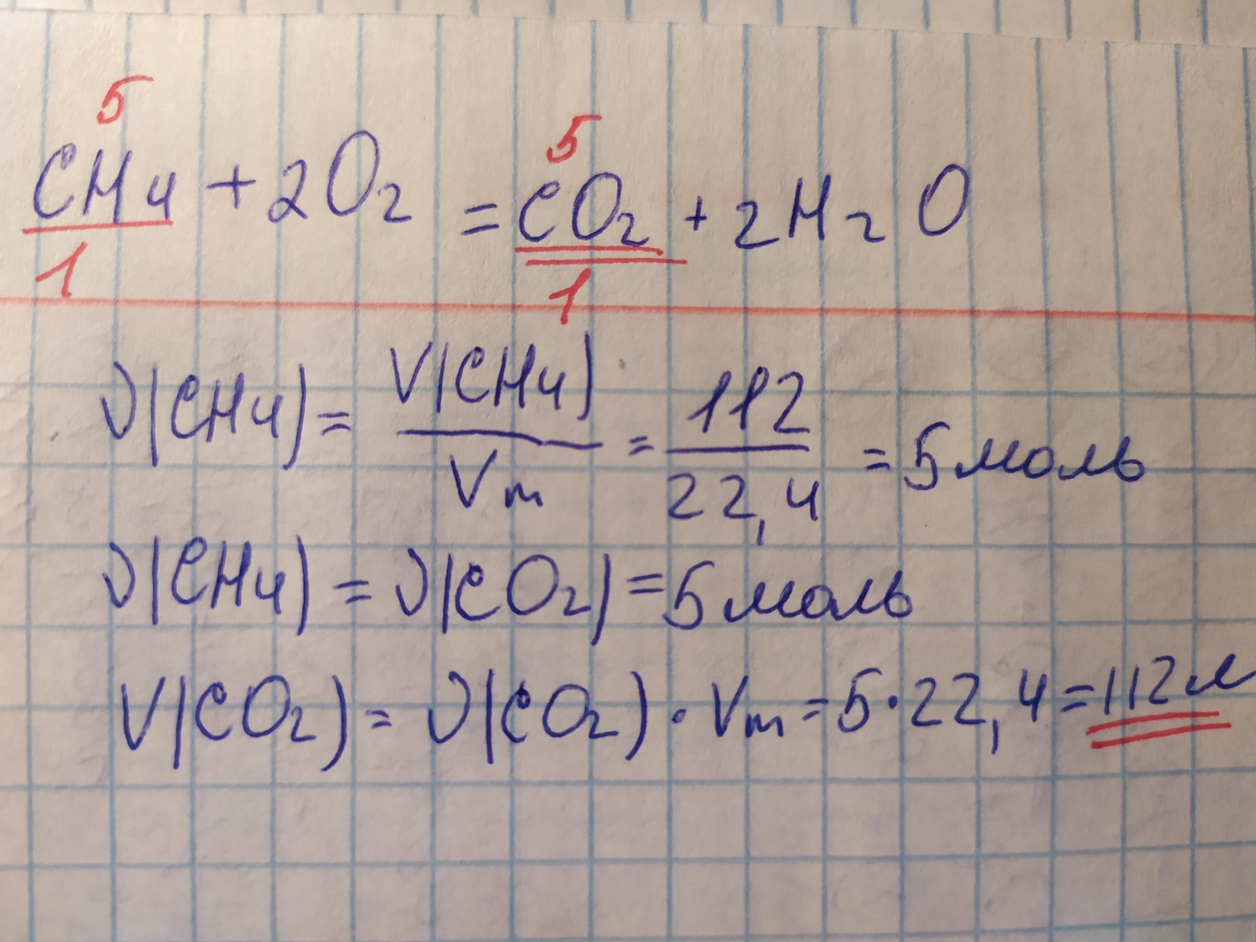 Метан(CH4) объемом 112л сгорел на воздухе. Какой объем углекислого газа при этом образуется, если уравнение реакции: CH4+2O2=CO2+2H2O
