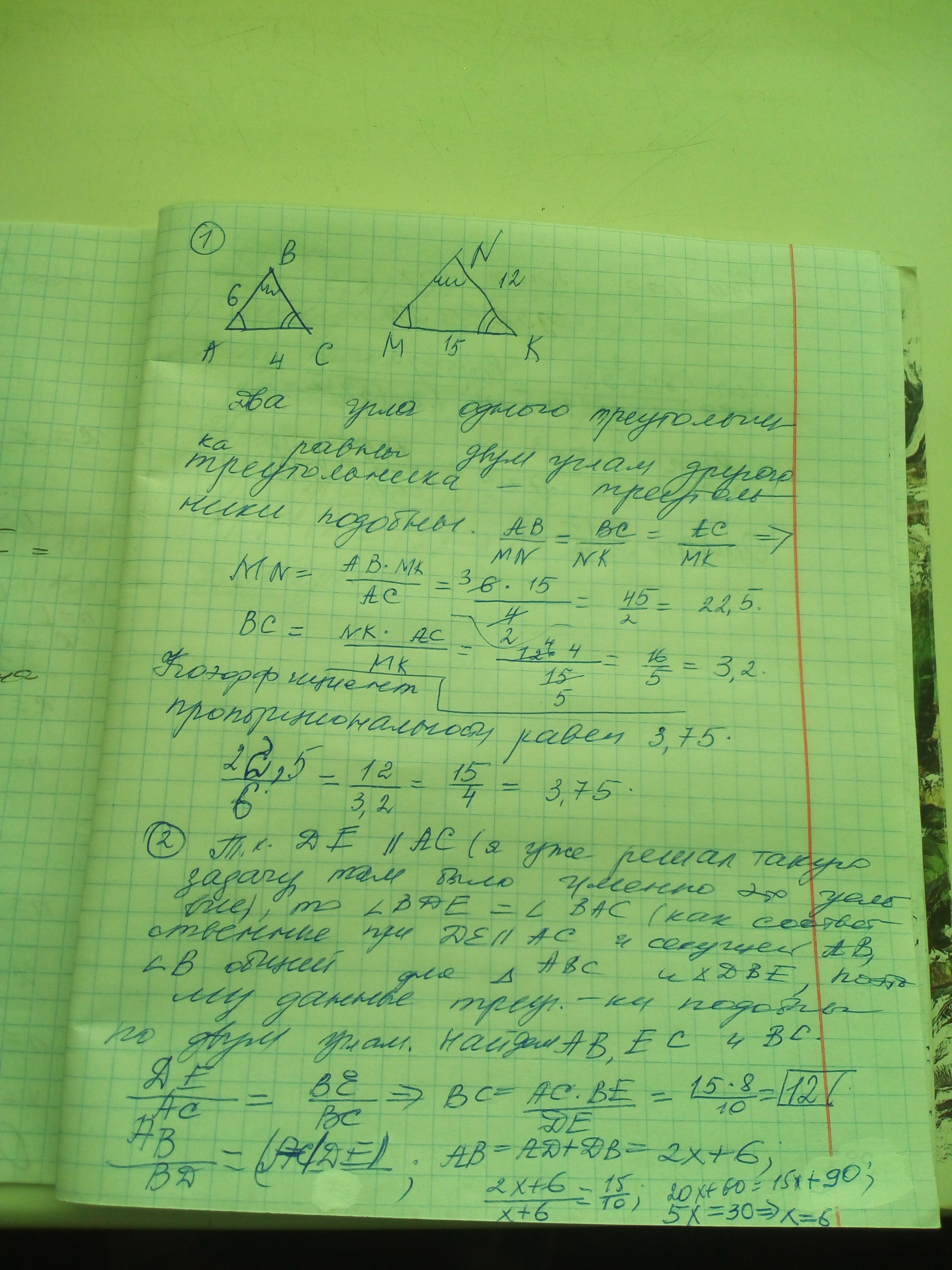 будьте так любезны. добавьте. пожал..ста про параллельность прямых. она там есть. вы забыли написать. иначе злые люди ваш вопрос снесут вместе с моим ответом) во втором ДЕ и АС параллельны, а в третьем а и в.