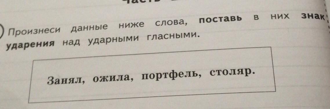 Произнести данные ниже слова, поставь в них знакударение над ударными гласными.