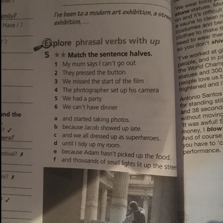 6. We can't have dinner because Adam hasn't picked up the food. (e)