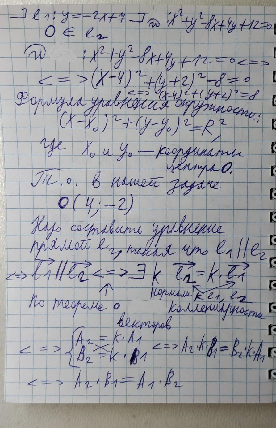 Составьте уравнение прямой, которая параллельна прямой y = -2x +7 и проходит через центр окружности х2 + у2 – 8х +4у + 12 = 0.