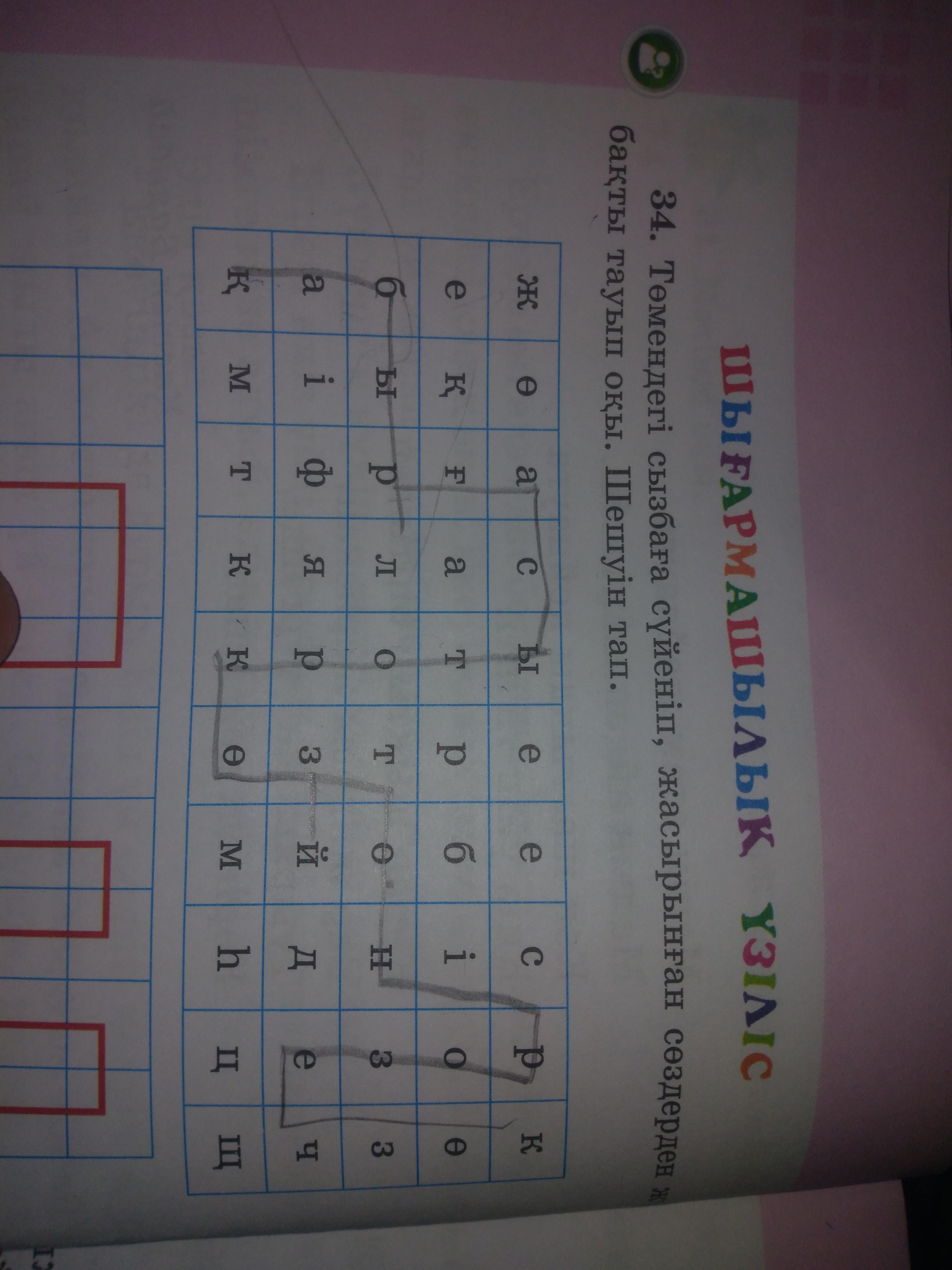 төмендегі сызбаға сүйеніп, жасырынған сөздерді жұмбақты тауып оқы.