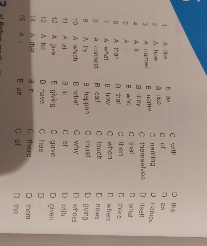 Ответ:1) as; 2) like; 3) named; 4)themselves; 5) that; 6) than; 7) where; 8) touch; 9) going; 10) why; 11 at