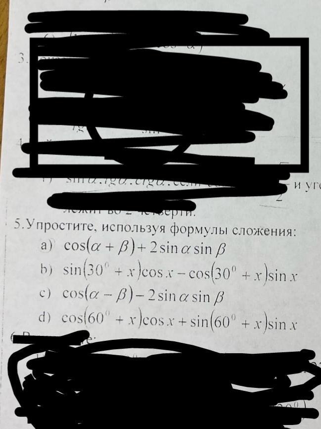 а) cosacosb - sinasinb + 2sinasinb = cosacosb + sinasinb = cos(a - b)