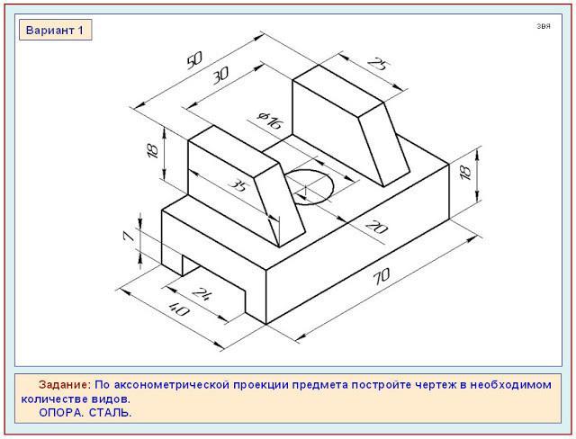 По аксонометрической проекции предмета постройте чертеж в необходимом количестве видов опора сталь.