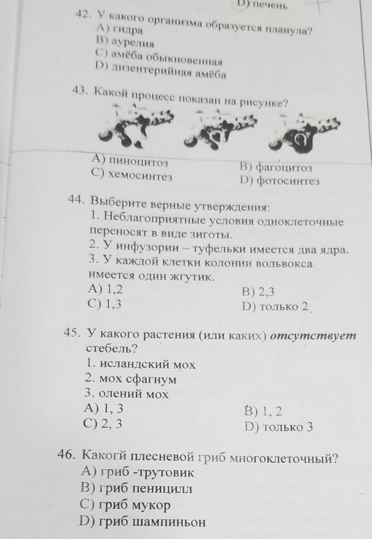 44) Зигота - оплодотворенная яйцеклетка. У инфузории туфельки есть малое и большое ядро. Клетка вольвокса похожа на хламидомонаду и имеет два жгутика.