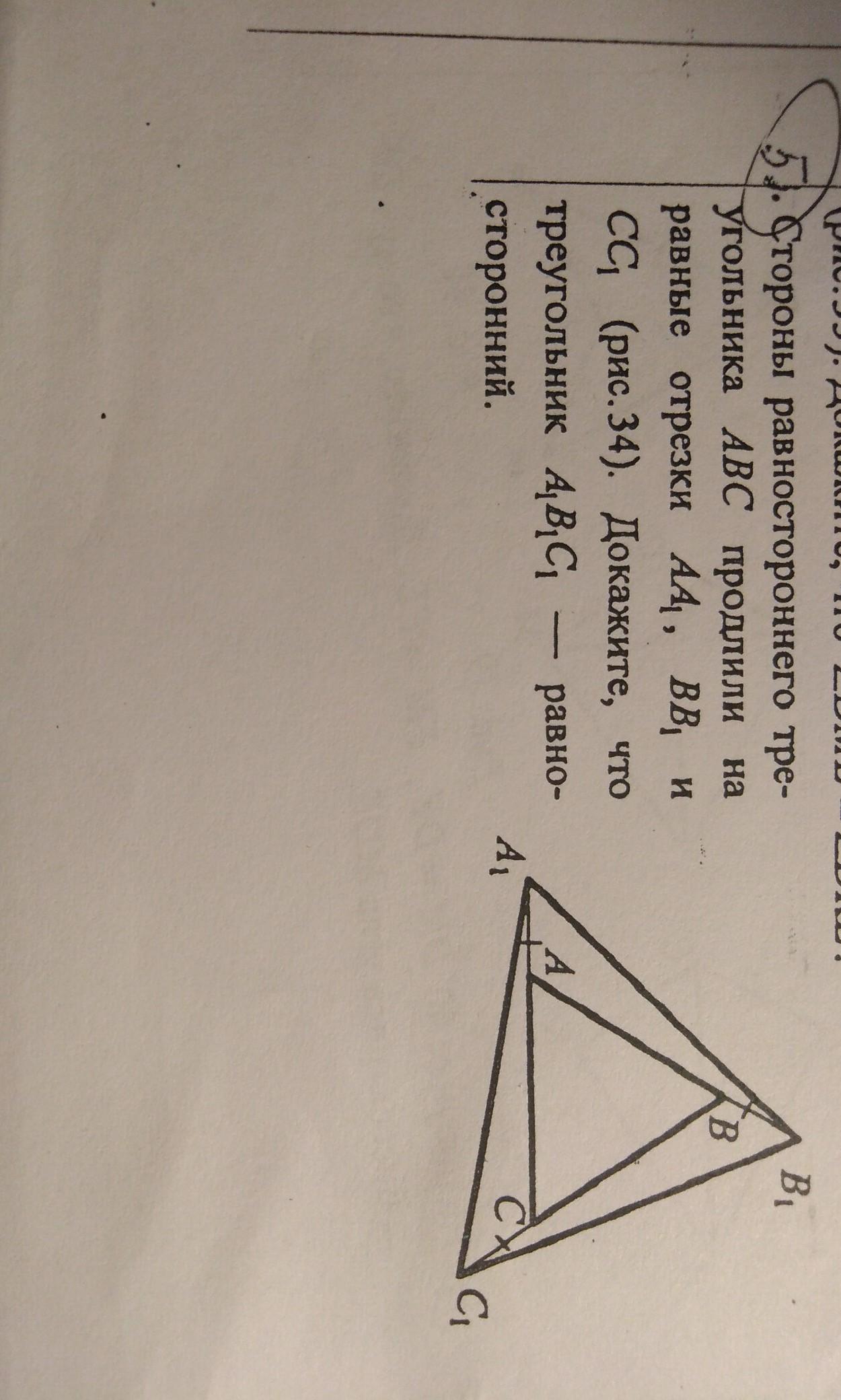 Треугольники ΔА¹АВ¹, ΔВ¹ВС¹ и ΔС¹СА¹ равны по двум сторонам и углу между ними (ну, мы ведь уже по ходу решения доказали, что АВ¹= ВС¹=А¹С, ∠А¹АВ¹=∠В¹ВС¹=∠С¹СА¹, АА¹=ВВ¹=СС¹).
