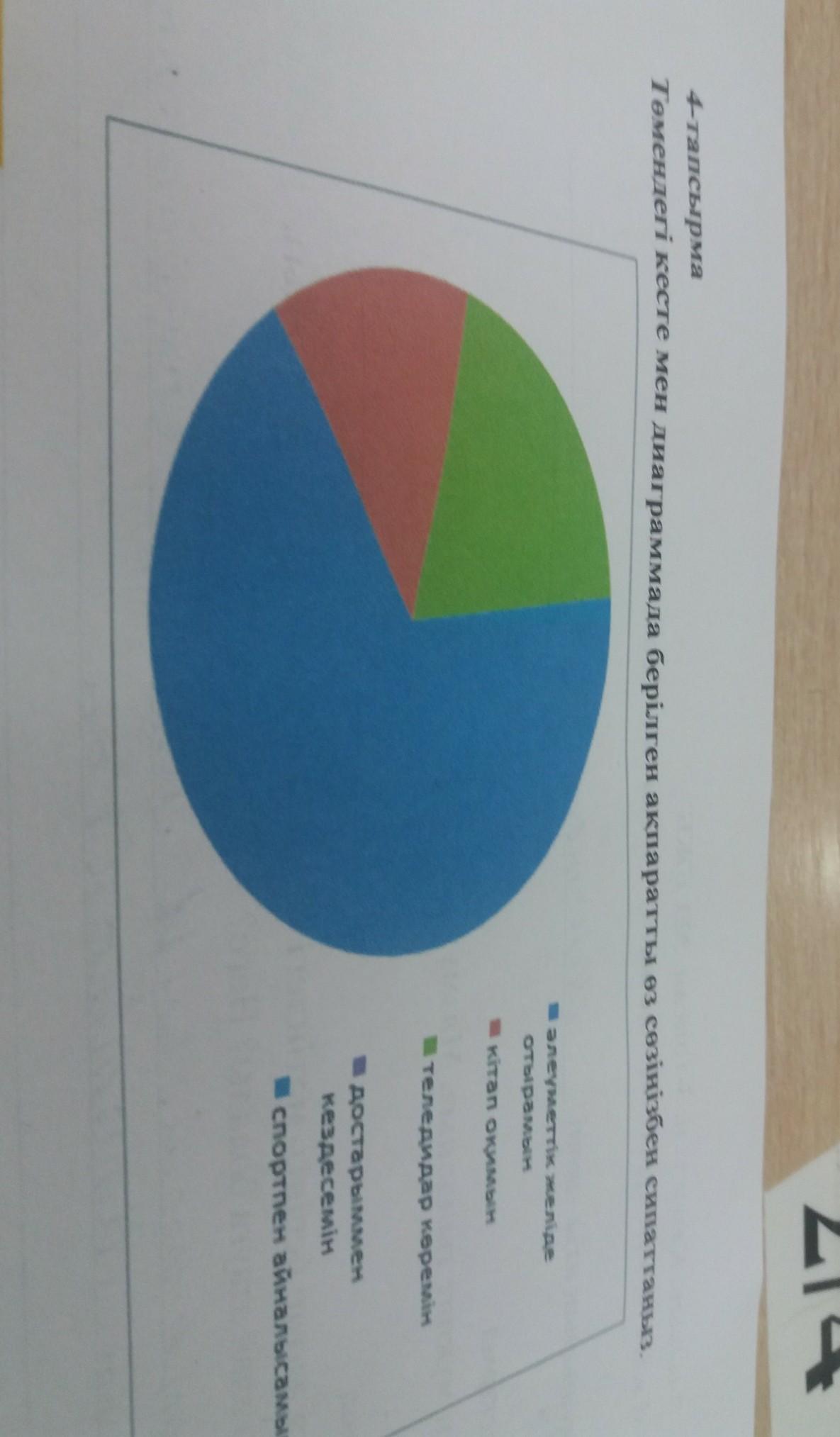 Ответ: Көп уақыт әлеуметтік желіде отырып қараймын, күніңе екі-үш сағат кітап оқимын және теледидар көремін.