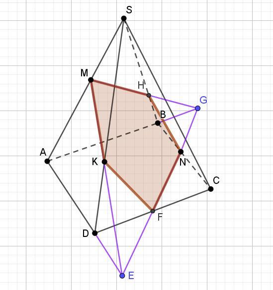 Надо использовать пресечение прямых для нахождения нужных точек. MK ⇒ точка Е. EN ⇒ точки F и G.