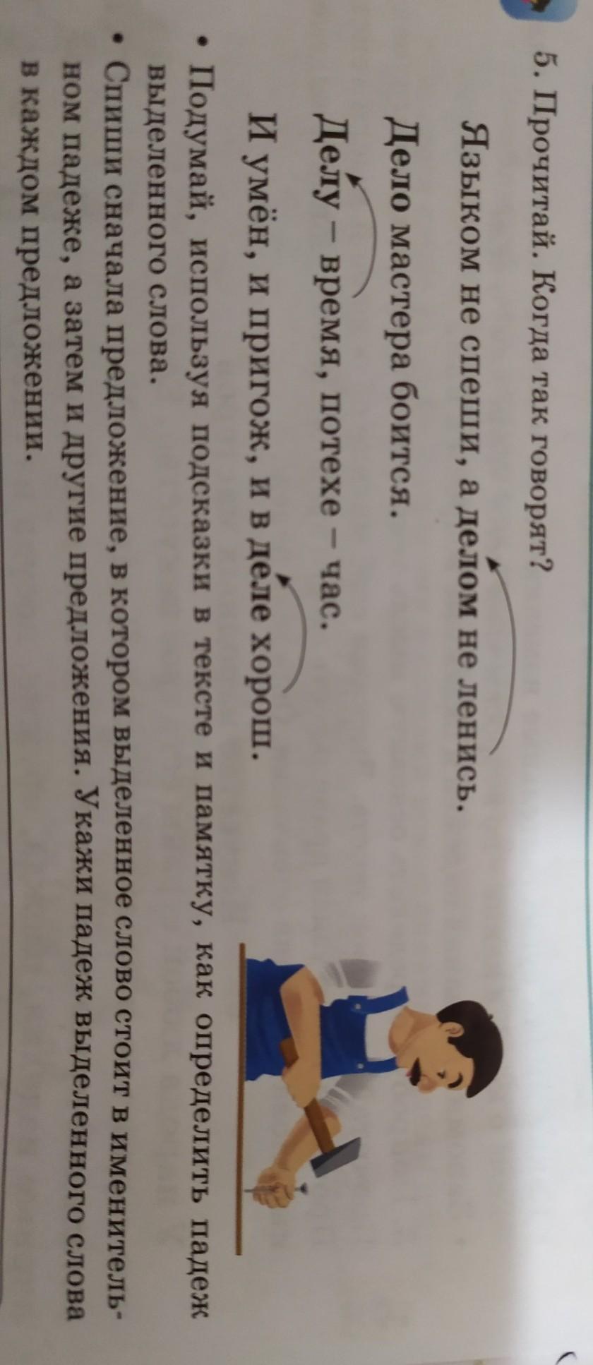 • Подумай, используя подсказки в тексте и памятку, как определить падеж