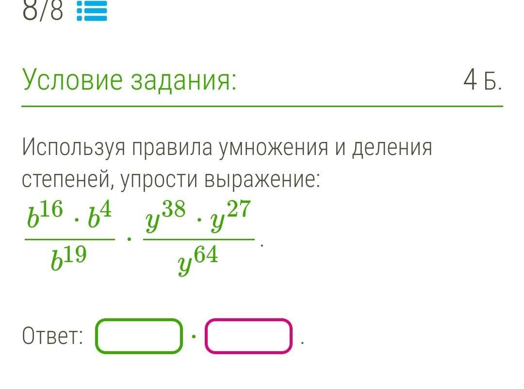 b^(16+4-19) y^(38+27-64)=by