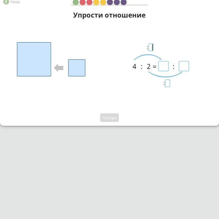 тут 4 делишь на 2=2 и подбираешь так же два числа что бы при делении получить 2 например 9:3=18:6=3