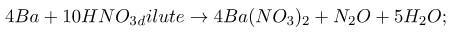 4Ba+10HNO3=4Ba(NO3)2+N2O+5H2O