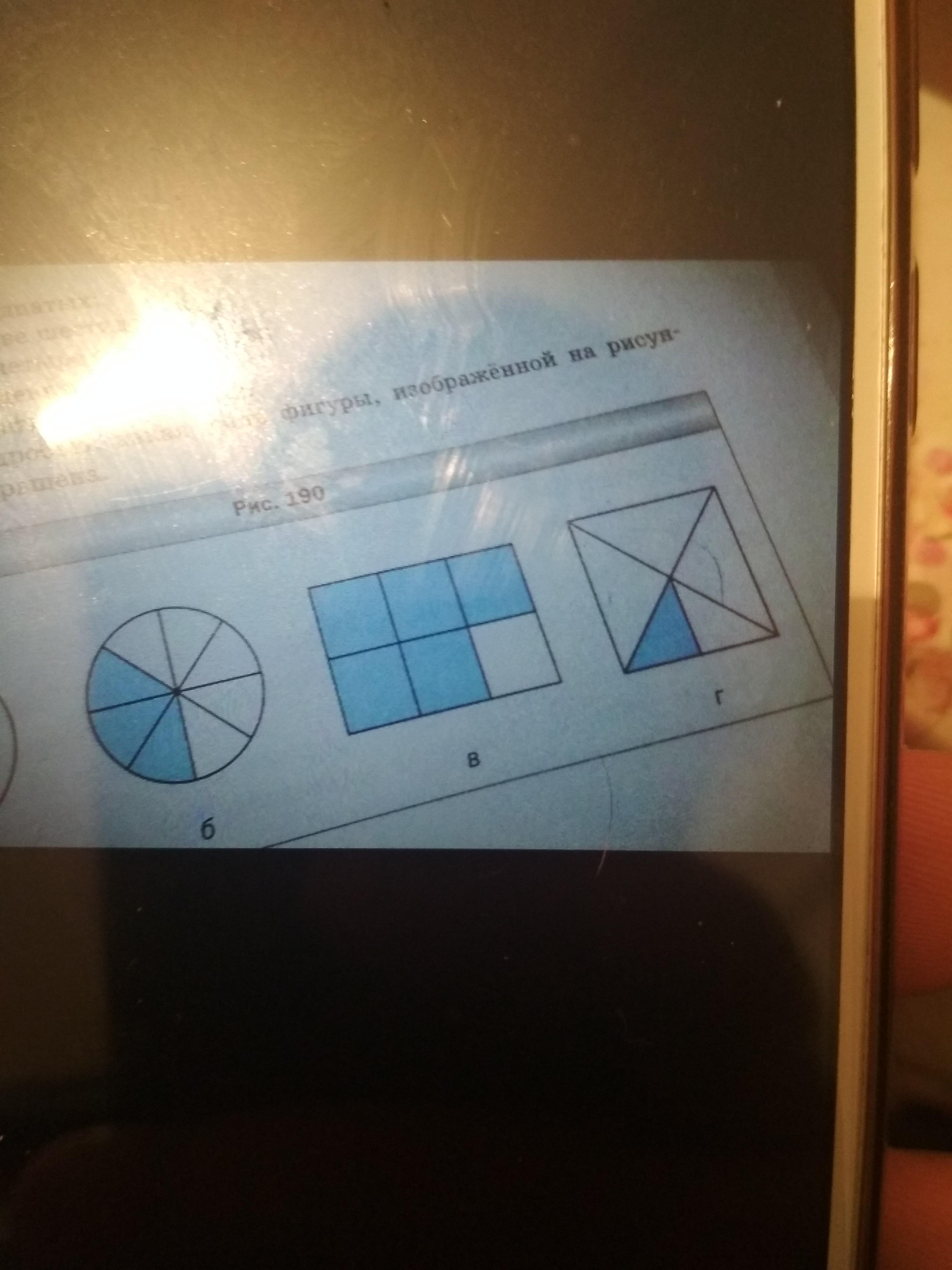 Запишите дробью,какая часть фигуры, изображенной на рисунке 190, закрашена ( под буквой Г)