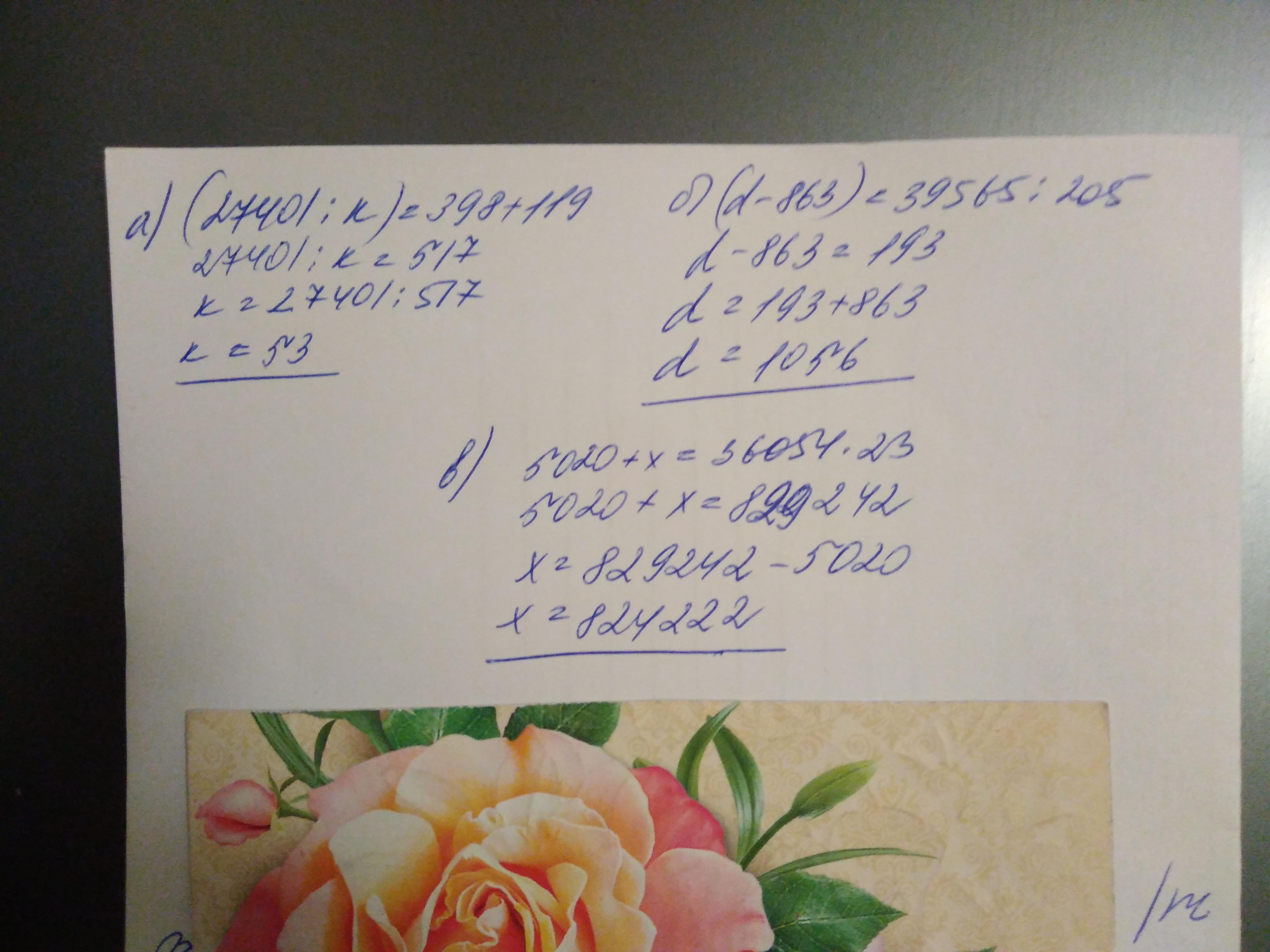 а) Частное чисел 27 401 иk равно сумме чисел 398 и 119.