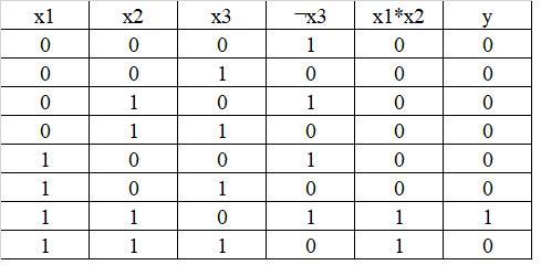 Выписываем конъюнкции по правилу: если в наборе переменная принимает значение 0, то она входит в конъюнкцию с отрицанием, а иначе - без отрицания.