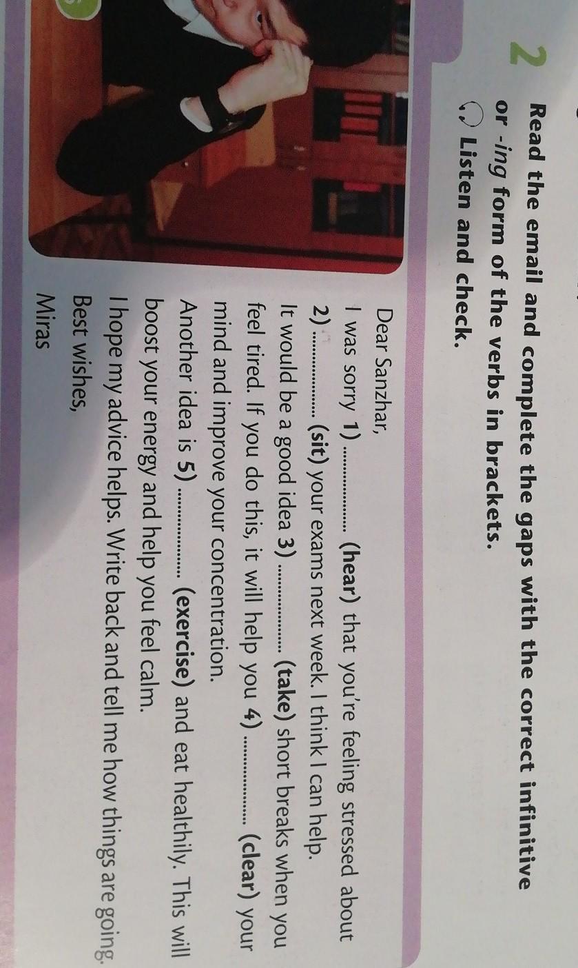 1 to hear 2 sitting 3 to take 4 clear/ to clear 5 to exercise