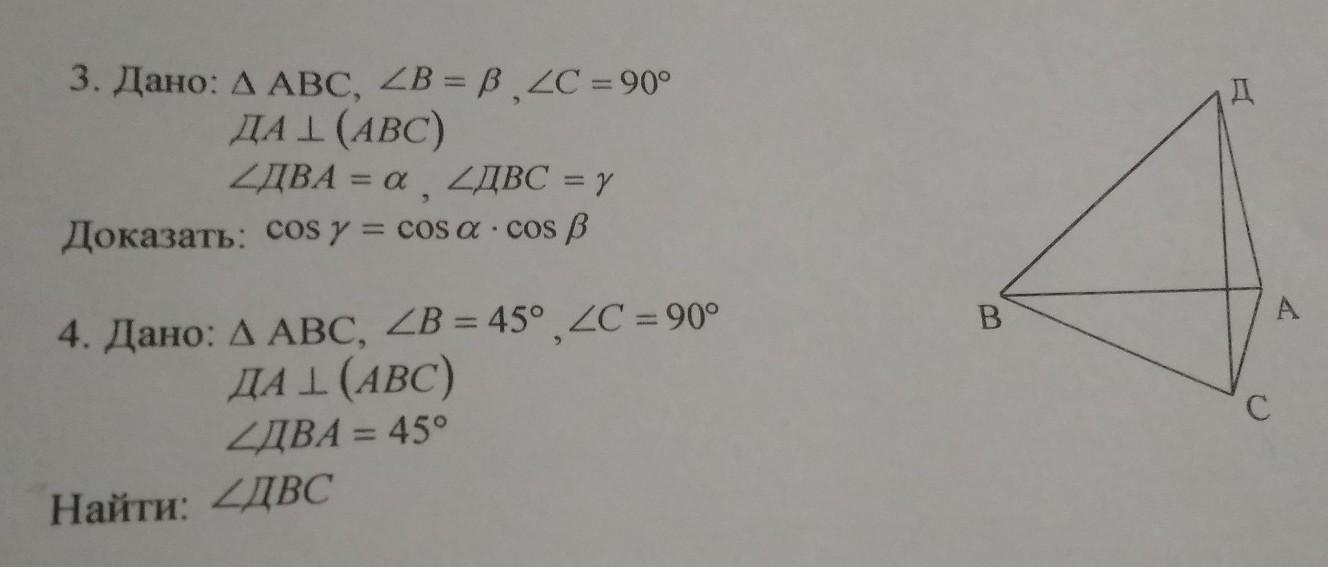 cosγ=ВС/ВД=(ВС/ АВ) *соsα=соsβ*соsα , ч.т.д.