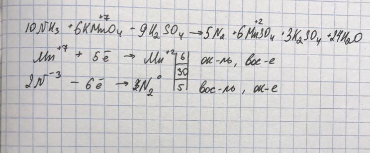 NH3 + KMnO4 + H2SO4 –> N2 + MnSO4 + K2SO4 + H2O