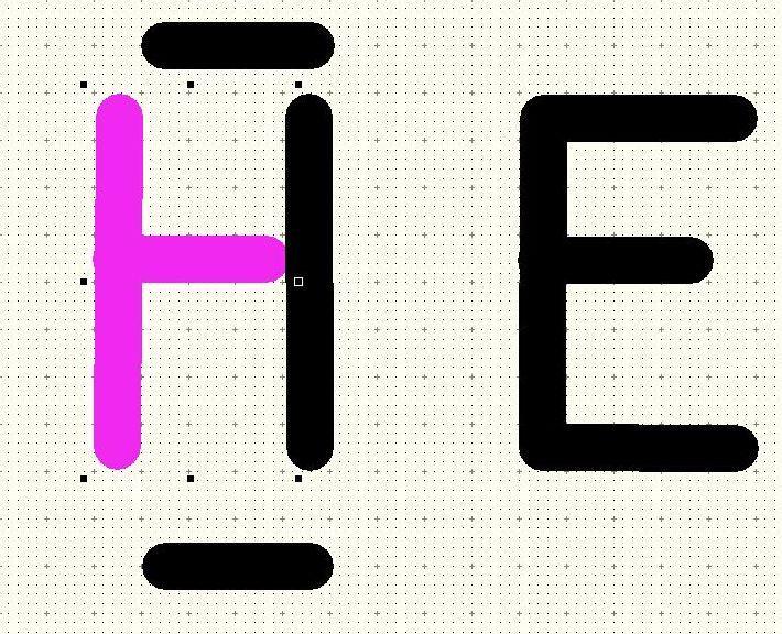 Из рисунка видно, что буква Е состоит из красной части буквы Н и вертикальной палки.