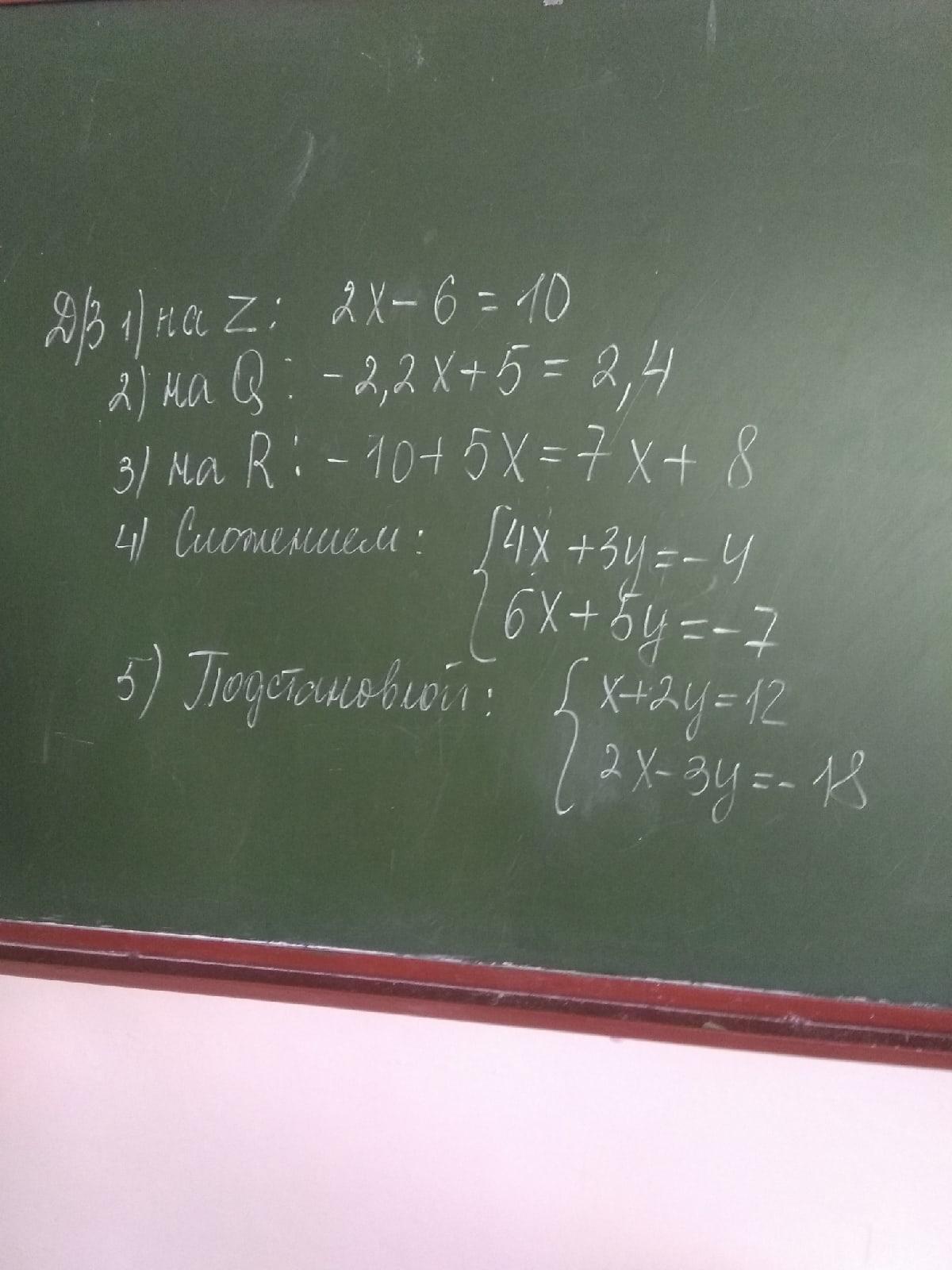 Помогите пожалуйств решить уравнения на множествах Z, Q, R в соответствии с картинкой. Математика 8класс. Заранее благодарен.