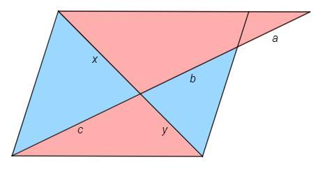 Красные треугольники подобны (по накрест лежащим углам при параллельных).