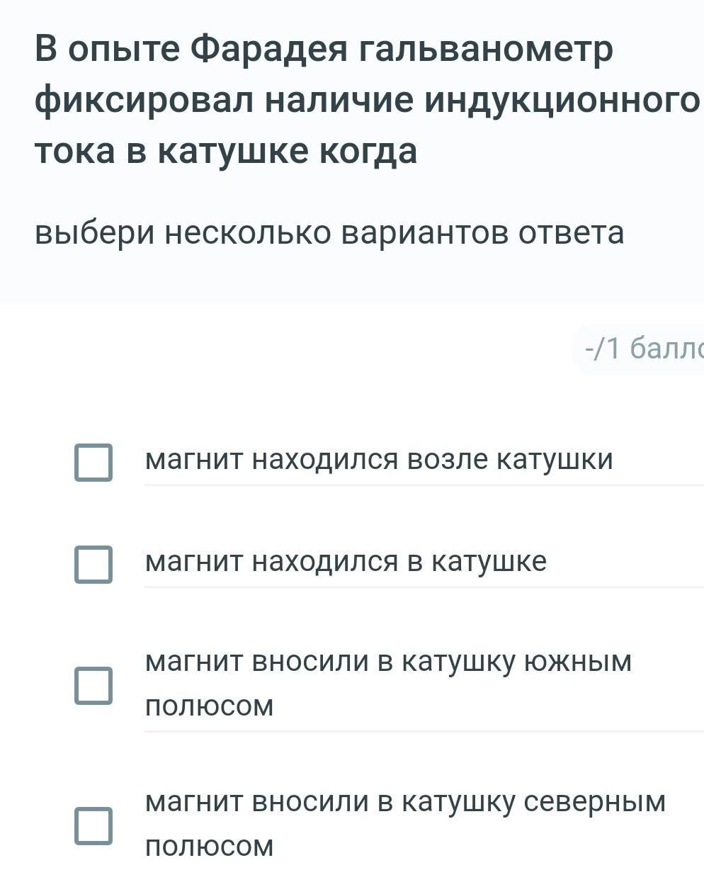 ПОМОГИТЕ ПЛИЗ!!!! В опыте Фарадея гальванометр фиксировал наличие индукционного тока в катушке когда.