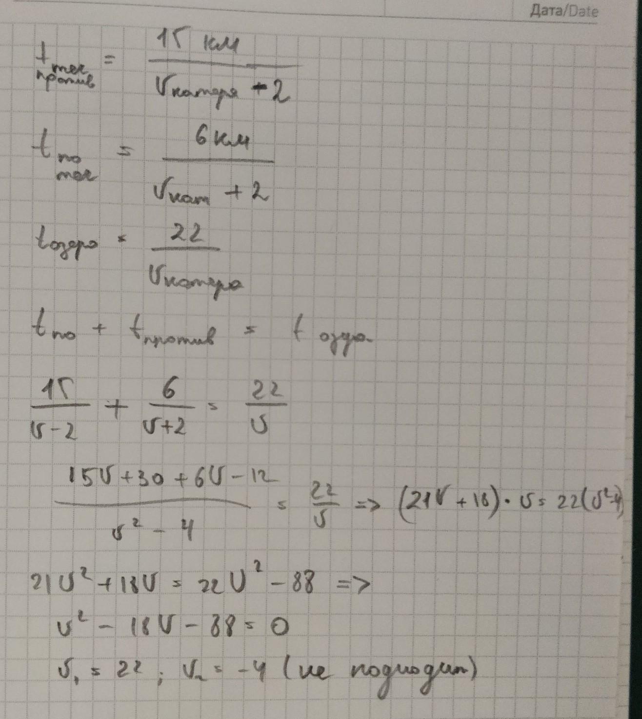 Ответ : 22 к /ч - собственная скорость катера