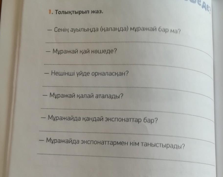 1)Бар 2)коше Сакен Тумаров 3)уй 26 4)"Рухани жангру "5)Муражайда бурынан калган ыдыстар, киiмдер, ежелги сандыктар, турлi буйымдар сакталган. 6)эскуровод