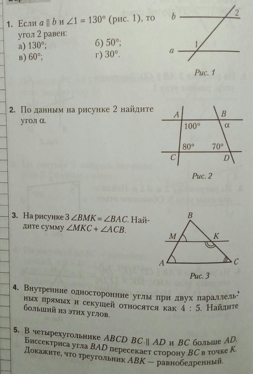 3) 20° • 5 = 100° - больший из внутренних односторонних углов.