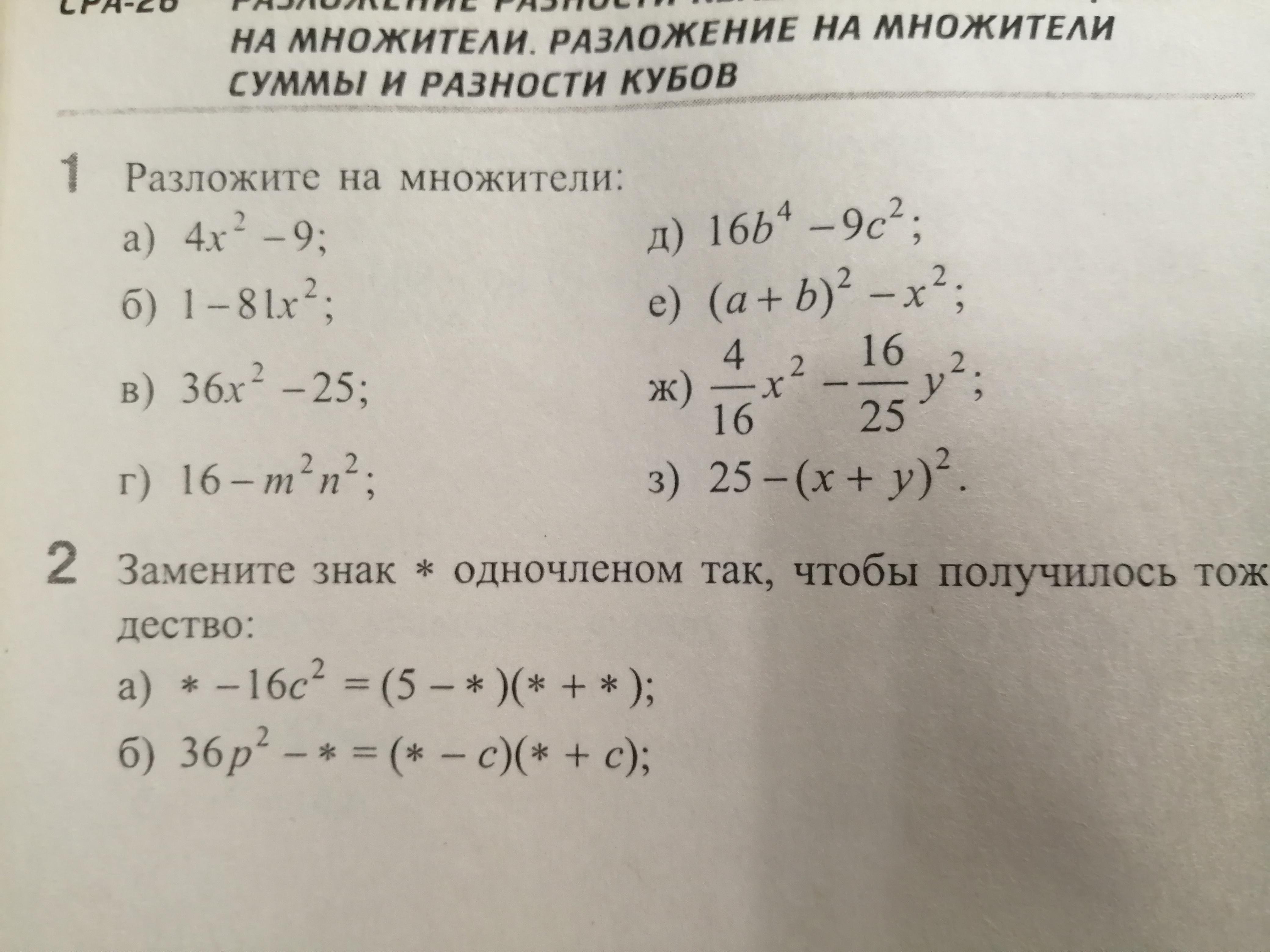 У вас ошибка в д) Там будет (4b^2-3c)(4b^2+3c)