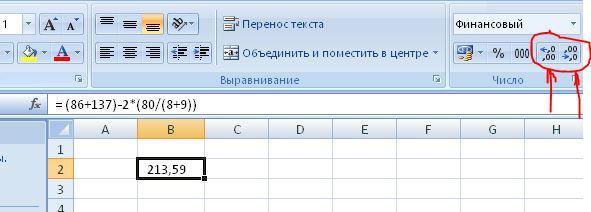 для округления до какого либо знака, выделив ячейку пользуемся отмеченными кнопками