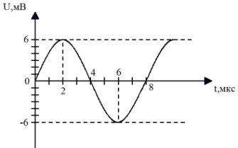 2. Определить амплитуду колебаний напряжения, период, линейную частоту, циклическую частоту.