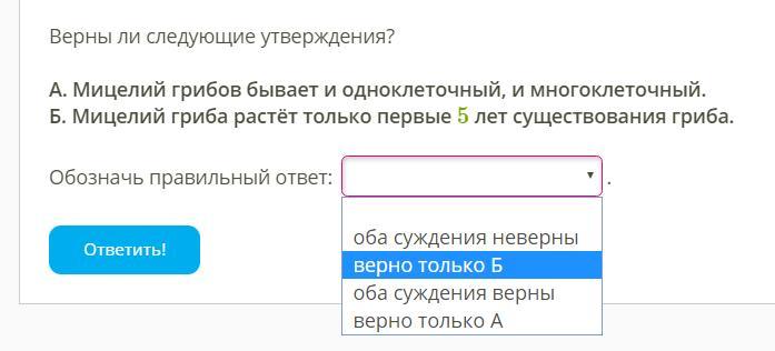 А. Мицелий грибов бывает и одноклеточный, и многоклеточный.