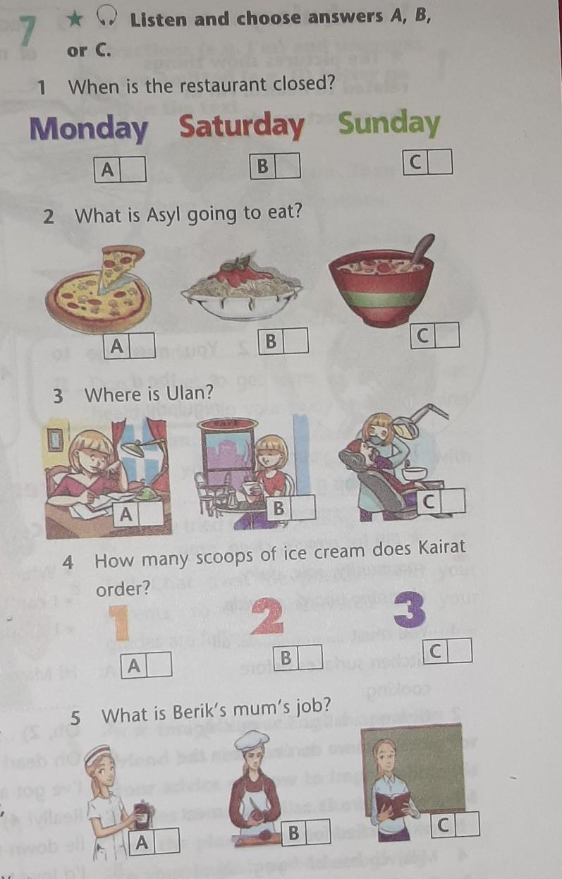 Начнем с того, что это задание - аудирование. И не послушав его, нельзя правильно определить, что где. Можно поискать в интернете если знать учебник и для какого он класса