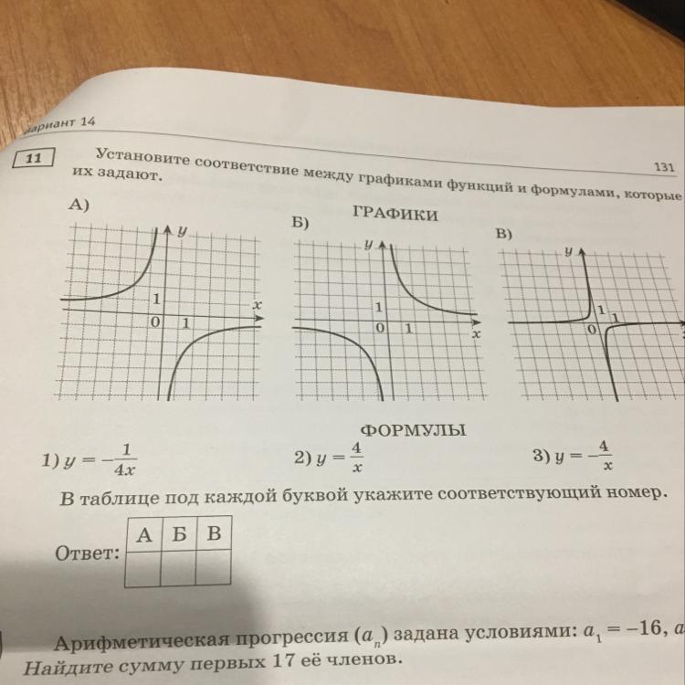 Смотрим. 1) y=-1/4x. xy=-0,25 - меньше нуля. Гипербола лежит во второй и четвертой четверти. У нас таких пока целых две.